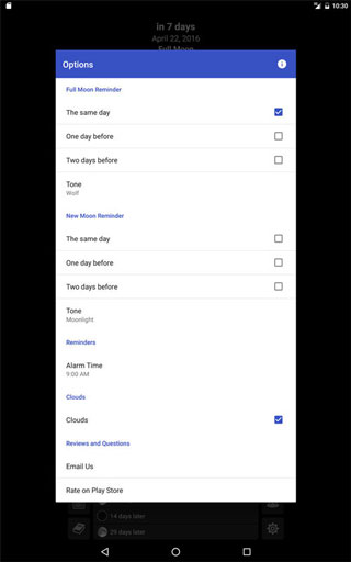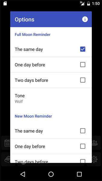 Set up reminders for full moon or new moon.